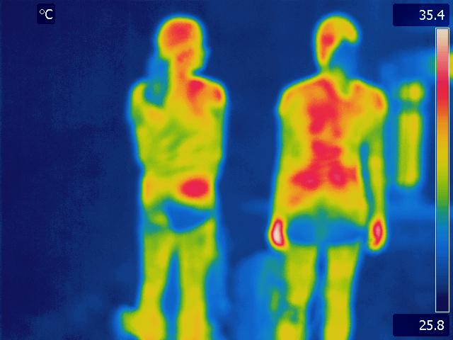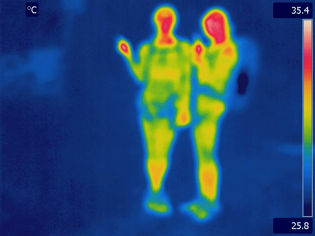 サーモグラフィーの前ではその火照りは隠せないぜ! と撮ってみると、アレ? あんまり違いがない。