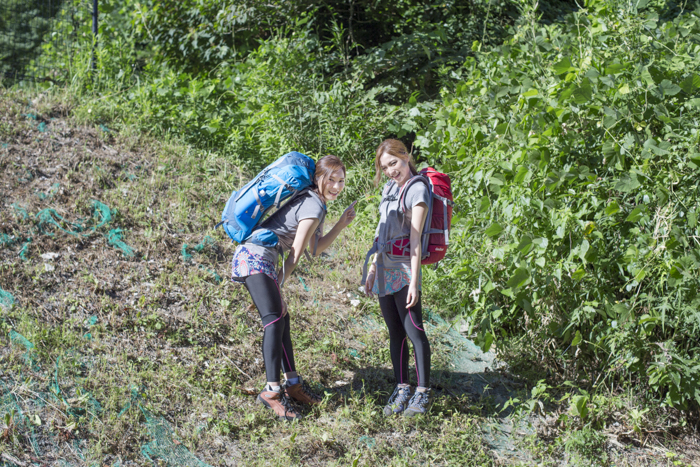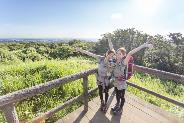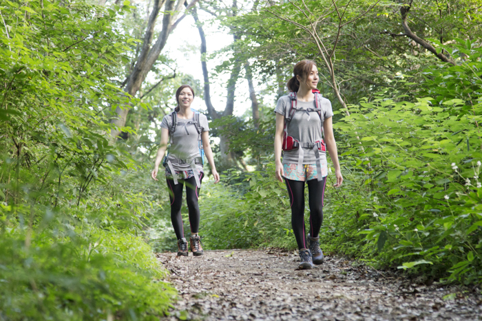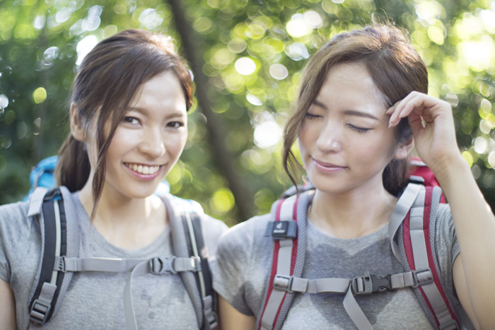 風通しの良い夏山用バックパックと、一般のバックパック。夏山用のパックが一体どれくらい涼しいのかを確かめるために、神奈川県の二子山にやってきたのは一卵性双生児の「ひうら姉妹」。