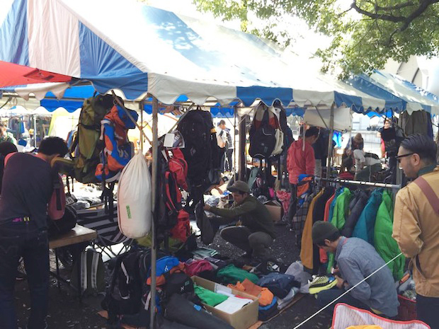 それもそのはず、出店はアウトドアショップ、アウトドアメディア(雑誌・有名ブログ)、ガイド、日本のガレージメーカー、アウトドアメーカーのスタッフ、ファッション関係者……という、現在のアウトドアシーンを盛り上げている全方位の方々。出品物はすべて私物から放出され、なかにはマニア垂涎の超激レアアイテムなども登場。また、雑誌などのメディアで活躍する著名人の出店もあり、ご本人に会える!というスペシャルなオプションも話題で、遠方からお越しの方が毎年は何名もいらっしゃるのもうなずけます。