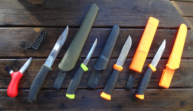 服部さんが北海道に携行したナイフ。右から「コンパニオン」「モーラ2000」「フィッシング コンフォート スケーラー」「748MG」「マッシュルームナイフ」