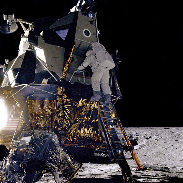 1969年7月、人類が初めて月面に着陸。アームストロング宇宙飛行士(アポロ11号)は、”小さな一歩だが、人類にとっては偉大な一歩だ”の言葉を残した。ちなみに、この写真を撮ったのがアームストロング氏。(NASA on the Commons)