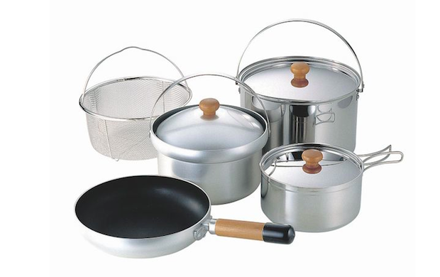 複数の鍋がひとつに収納された「ユニフレーム」のロングセラー商品。何がすごいって、その組み合わせです。ひとつの鍋セットの中にステンレスの鍋とアルミの鍋が混在しているのって、じつはとてもすごいことなんです。ほかの鍋はアルミならアルミ、ステンレスならステンレスでセットになってることが多いですが、これは1番外側の大鍋はステンレスで、ライスクッカーはアルミというように、それぞれの鍋の役目が考えられ、最善の組み合わせになっています。生産効率はとても悪いのですが、あえてそこを組み合わせている部分が長く支持されている理由だと思います。