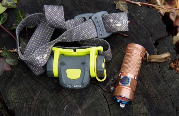 ヘッドランプは単三×1本のコンパクトモデルだが、バンド部分がかさばる。このフラッシュライトはクリップを使い帽子のツバに装着することも可能だ