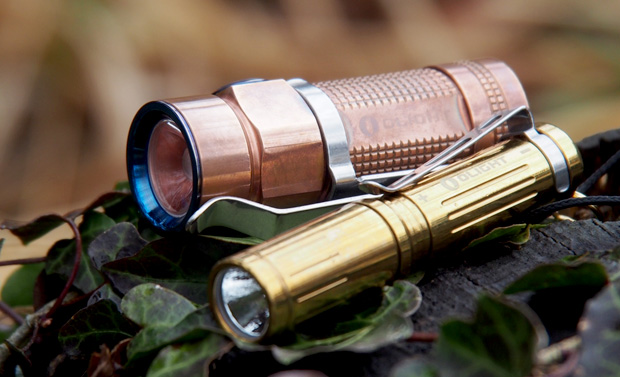 奥は限定5,000個の銅製モデル。手前は真鍮モデル。他にもチタン製などを出している。ともにOlight社