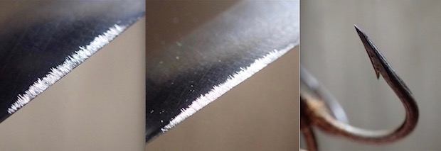 仕上がりはやや粗いものの研削力は抜群。短時間で確実にタッチアップできる。ナイフ、鉤先ともに短い時間で使用にストレスないレベルにまで高める。