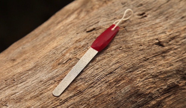 ナイフも砥げるものの、やはり本来の用途通り繊細な釣り鉤向き。釣り場で首から下げておき、鉤先の甘さが気になったときにさっと砥ぐ、という使い方に。