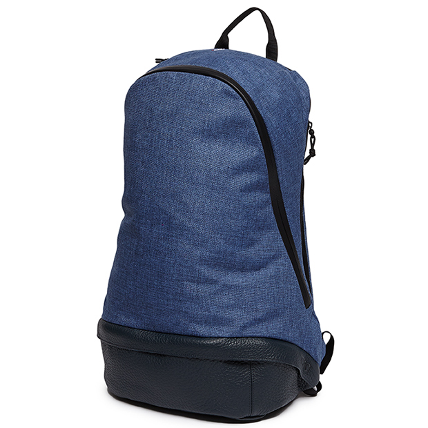 ワックス加工されたポリコットンキャンバス生地と、スリムな豆型の形が印象的。11インチのタブレットと、15インチのPCを収納できるパッド付きインナーポケットが内蔵され、外見のすっきりした見た目からは想像できないほどの収納力がある。トップとサイドに小さなジップ付きのポケットを完備、鍵などの小物ももれなく収納。