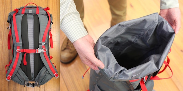 まったく引っかかりがなく、つるつるしているから荷物がスルスル入っていくので、荷物それぞれにビニール袋やスタッフバックに入れるなどの防水処理を施す必要がありません。なんでもギューギュー押し込んで、ロールトップで締めあげればパッキング完了。この使い勝手はたまりません!