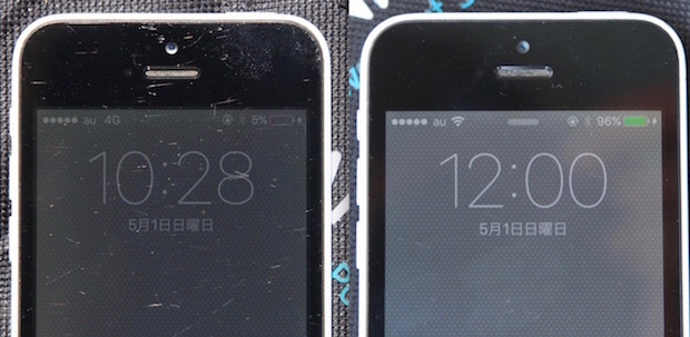 最初に充電してみたのはiPhone5C。5Cのバッテリーの容量は1500mAhほどだが、購入から2年を経ているのでバッテリーの容量はもっと小さくなっていると思われる。