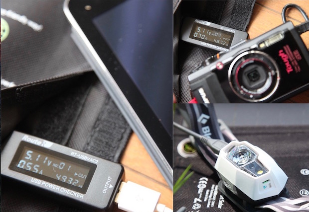ヘッドランプ、コンデジなど充電時のアンペア数の設定が低いものはスムーズに充電できる。反面、2Aで充電するのが望ましいiPadや大容量モバイルバッテリーとの相性はイマイチ。ただし、時間をかかるけど充電は可能。