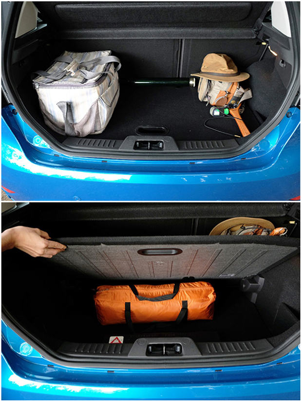 車内も広々としており、トランクルーム(ハッチバックだけれど)もコンパクトキャンプよりひと回り大きめの道具を積み込んでもいけるくらいの容量だ。ましてアンダートレイの下にも十分なスペースが用意されている。