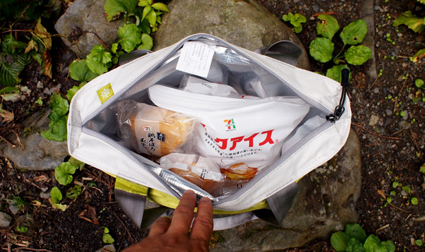 真夏は水の代わりに、保冷剤を兼ねて氷を持ち歩く。本当に暑い時の氷は生き返る。ボトルもだが、クーラーバッグも登山に調度良いのがなかなかないのが悩み。まわりを見ていると、ビールのおまけクーラーバッグが一番人気だ