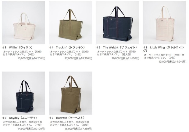トートバッグといえば、そのはじまりは、電気冷蔵庫が無かった時代、凍った湖から切り出した氷を運ぶための作業バッグだったとか。キャンバス地のしっかりとした生地で、広口のシンプルなバッグがベース。ワークアイテムとしても、ファッションアイテムとしてもバリエーションが増えつづけ、いまや広口でマチ付の手提げ袋を総じてトートバッグというようになった。