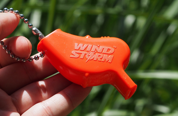 大型ボディで強烈な音のするウィンドストームホイッスル。小さな息でも音が出る。より音の大きなストームホイッスルがあるが、デザインが好きなコチラを使っている