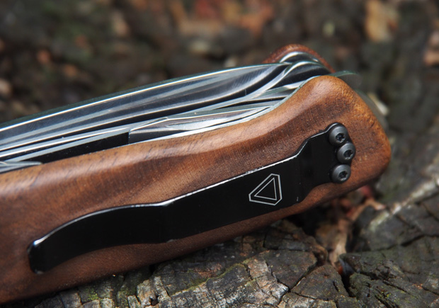 小さな機能のネイルマークが木部で隠れ、とにかく取り出しにくかった。開きやすいように木部を削り、ワックスを塗り、ドリルで穴を開けポケットクリップを装着した。ナイフはちょっとした自己改造(カスタマイズ)も楽しい