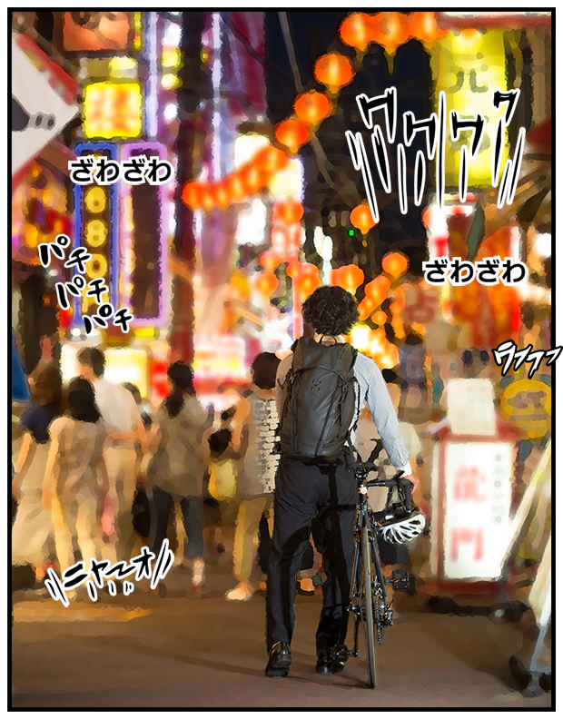 嗚呼、今日も一日、いい仕事をした。心地いい疲労感だ。仕事の疲れを癒しに、街に繰り出すとするか。