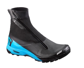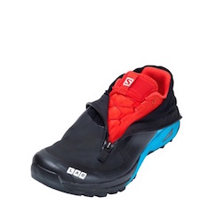 その防水ゲイターのファスナーを開けるとこの通り、ローカットのトレランシューズが顔を出します。ベースになっているのはサロモンのトレイルランニングシューズの中でも最軽量の「S-LAB SENSE 5 ULTRA」です