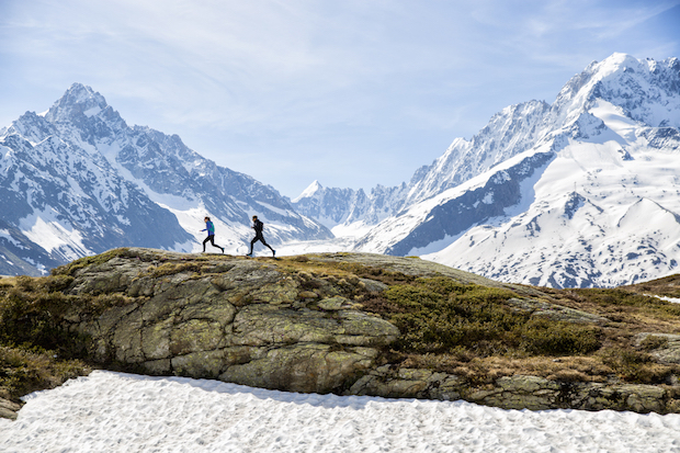 標高の高いエリアでの土や泥道、雪渓、岩場といった良好ではないコンディションに対応するため、グリップ力や防水性などを高めているのが特徴。想定するステージはこんな、ため息が出るようなアルパインエリアです。