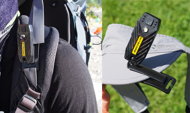 USB充電も便利だが、もう一つ便利な機能がクリップだ。帽子やウェアやバックパックに簡単に取り付けられる。ちょっとした作業しかしないのであれば、バンドで頭に付けるよりも、衣類にクリップして使うほうがスマートだ。軽量なのでブレずにしっかりと固定されるのもいい。