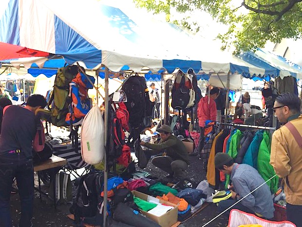 それもそのはず、出店はアウトドアショップ、アウトドアメディア(雑誌・有名ブログ)、ガイド、日本のガレージメーカー、アウトドアメーカーのスタッフ、ファッション関係者……という、現在のアウトドアシーンを盛り上げている全方位の方々。出品物はすべて私物から放出され、なかにはマニア垂涎の超激レアアイテムなども登場。また、雑誌などのメディアで活躍する著名人の出店もあり、ご本人に会える!というスペシャルなオプションも話題で、遠方からお越しの方がこれまでにも何名もいらっしゃいました。
