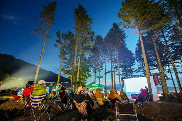 日中にはワンバーナークッキングなどの各種ワークショップ、夜にはペトラ氏、アウトドアライター森山伸也氏と大森千歳氏、山岳ガイド立本明広氏によるトーク&スライドショーが行われた。