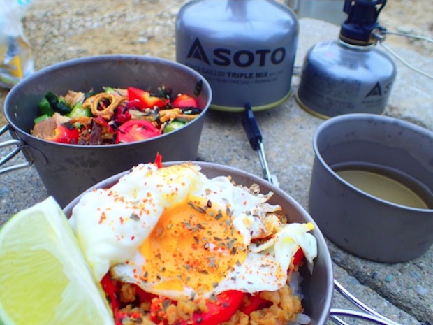 友人がおいしそうな山ごはん(ガパオライス)をつくってくれました