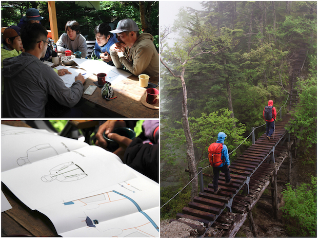 素材のラボテストや工場とのデベロップメント作業以外はすべて国内で行われ、必要とされる機能や実際のデザイン、使用する生地の選択などのフィードバックセッションが、アンバサダーの活動拠点の山梨県で何度もおこなわれた。右写真=JEFF JOHNSON