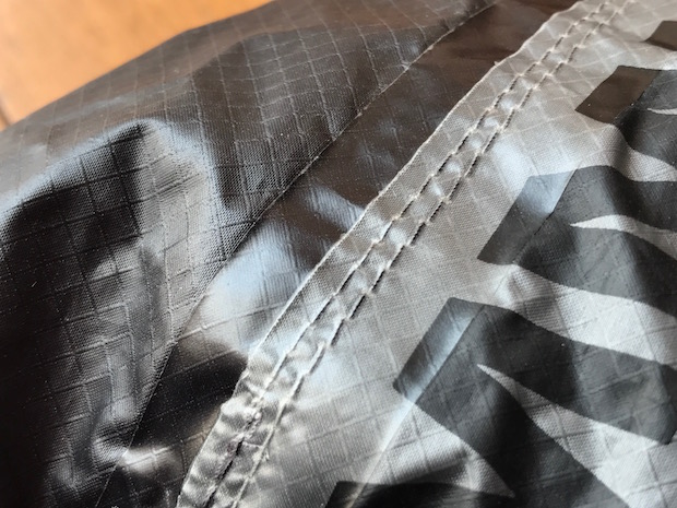 手のひらに乗るパッカブルなデイパックでありながら、その容量は20ℓ。これだけなら普通のエコバッグにもありそうだけれど、なんとこのパックはその名の通り本体が防水仕様! 縫い目にはしっかりとシーリングが施されています。