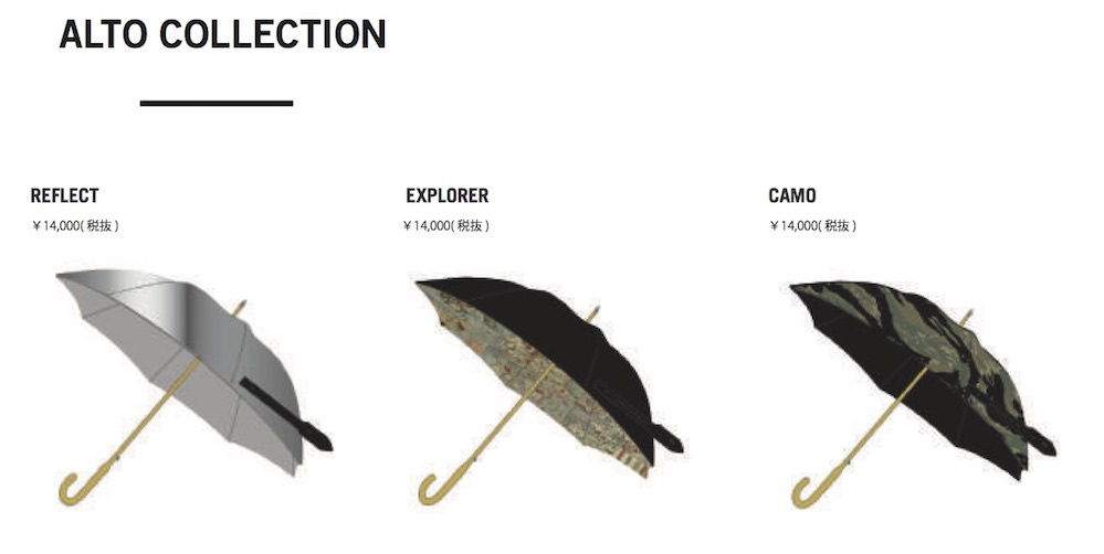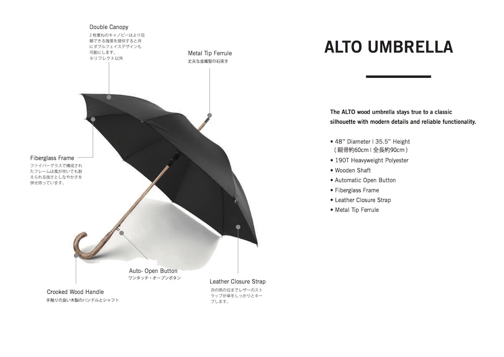 もっとも注目したいのが「ALTO(アルト)」というモデル。ファイバーグラスのフレームは美しい曲線を描きながら風を受け止め、ある程度以上の強風はしなやかに受け流します。また、2枚重ねのキャノピーは表と裏のデザインを変えるという、これまでの傘になかったルックを備えることにつながりました