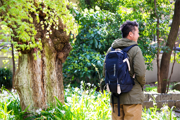 「ウェカはおもに日常使いしています。仕事柄、打ち合わせなどをしてそのままフィールドを見に行くというシチュエーションが多くて。なにかと荷物も重いほうなのでいつもバックパックなんです。これはフロントがガバッと開くところが気に入っています」