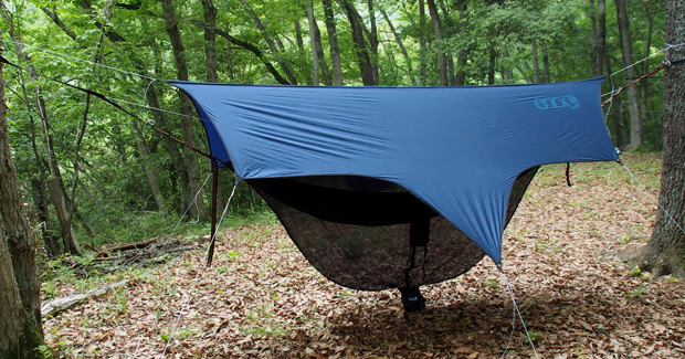 ハンモックを楽しんでいると、一緒に使いたいのが小型のタープだ。タープがあるだけでプラベート空間感がグッと上がるのだ。もちろん雨の心配も要らなくなる。ハンモックはシンプルなので、タープもシンプルで簡単に張れるものが気になることだろう。