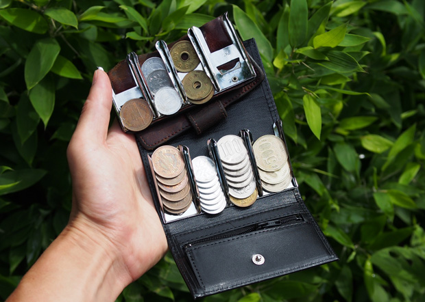 ちなみに普段は、写真の昔懐かしいコインホルダーを20年以上買い替えながら使い続けている。お札やカードもマネークリップで挟める分しか持たない。