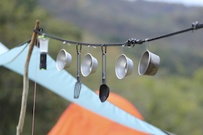 タープを引き、ライトを吊るし、バックパックに荷物をくくりつける万能支点=「パックタック」