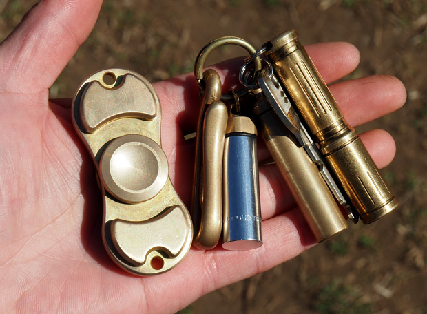 これは試しに買ってみた定番モデル。真鍮製でずっしりと重く、回すと遠心力でかなり長い間回っている。これで100gもあり、ポケットに入れて持ち運ぶには躊躇する重さだ。結局外に持ち出さないため使用頻度は少なかった。アメリカでも邪魔に感じてきたのか最近小型軽量の物が増えてきている。