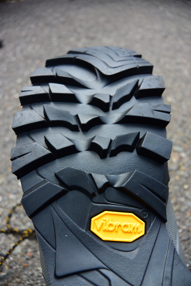 シリオビブラムIBEXソールは、角度を変えたブロックパターンで、岩場、不整地でグリップ力を発揮する。広いコンタクトエリアで歩行時の安定性を確保。女子的には泥落ちがよいセルフクリーニング設計がとてもうれしいポイント!