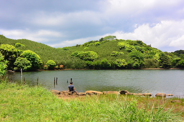 小広い頂上から少し下ってくると、とても静かで、美しい氷ヶ池という場所に出ます。池の傍が広くなっていて木陰になっているので、お弁当を広げてお昼にしました。