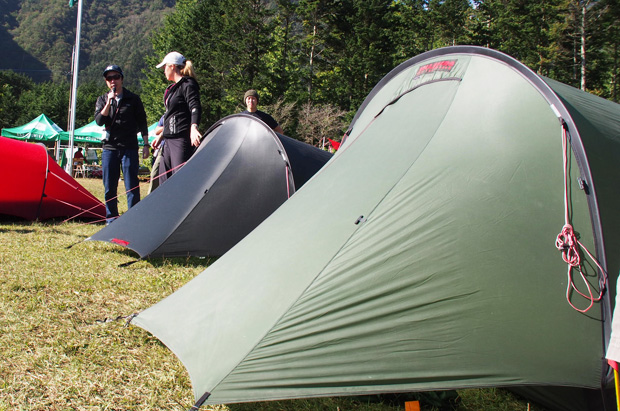 『Hilleberg Roundup 2016』の模様。ペトラ・ヒルバーグ氏が設営Tipsを説明してくれた