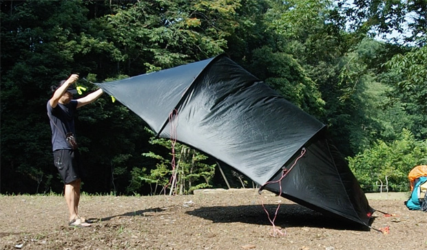 ほぼ初めての設営だったが、ペトラの設営方法を間近で見ただけのことはあるんじゃないかな? シワ無くとても美しく張れたと自画自賛中だ。