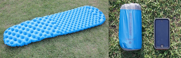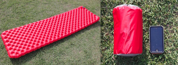 藤:寝っころがってみたときにハッとするほどの寝心地。収納時に手に持った感触では、ちょっと持ち重り感があるものの、寝心地に対しては十分許容できる重量。しっかりと睡眠をとりたい旅や、カヤックツーリング、自転車旅なら迷わずこれを選ぶ。