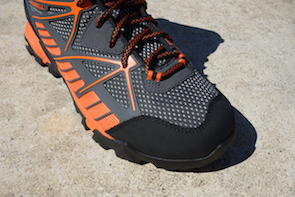 アウトソールのラグも高いグリップ力を生みだしています。特に、ヤギのひづめをモチーフにしたつま先のパターンはアウトソールの柔軟性を高めていて、岩肌にも柔軟に追従。歩きやすさを向上させているように感じました