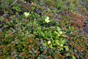写真は6月下旬。花の季節はもうすぐそこ。キバナシャクナゲはつぼみをつけはじめましたが、丸い葉のシラタマノキと葉の細いツガザクラはまだまだです