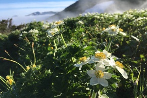 3日目の朝。太陽のなんと嬉しいことか! そして、朝日に照らされた風景のなんと美しいことか! エゾノハクサンイチゲの群落は、息を呑むほど神々しさでした