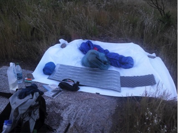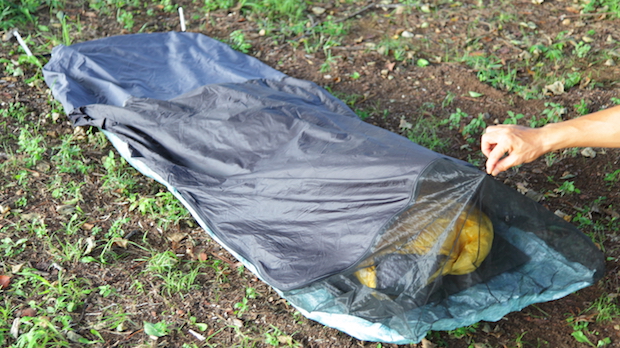 究極の布切れ。虫、ノーガード(笑)。ただ、この開放感・解放感はいいよね。アメリカのトレイルでは、たま〜に使っている人を見かける。