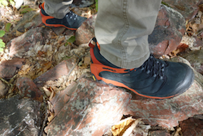 アウトソールにある程度の固さがあるので、枯れ枝だろうが何だろうが、気にせずぐいぐい歩くことができます。アッパーのフィット感はしっかり系。これなら相当の長距離を歩いても平気だと思います