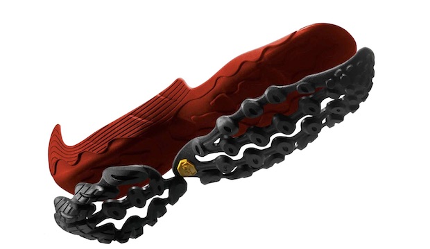 徹底した軽量化と、フレックスプレートのしなりを邪魔ましない構造。これらを考え抜いた結果、「フレックスプレート」の上の必要な箇所だけに、アウトソールのラバーのラグを網目状に配置しました。まさに計算しつくした構造です