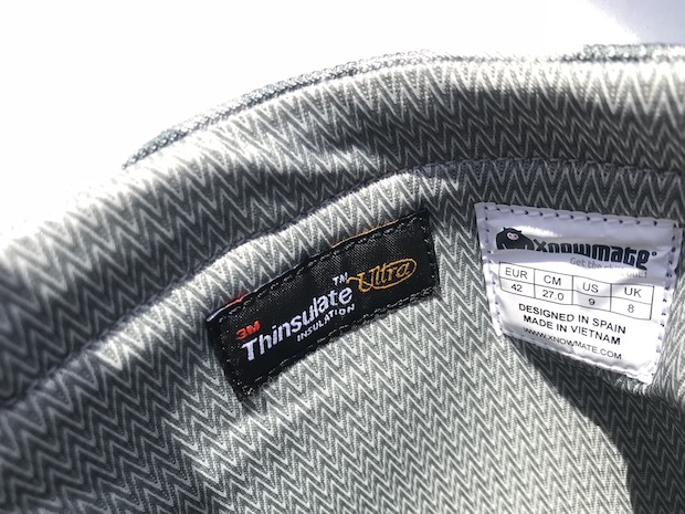 インソールもなかなか凝ったつくりとなっています。中間層にはアルミシートを内蔵し、反射熱の効果で保温力を高めています。持ち運びを重視しているので、ソールは比較的薄めですが、このインソールのおかげで足元はポカポカ。