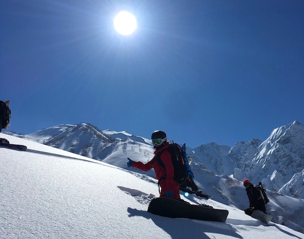 3月の白馬バックカントリー。ハイクアップとロングの滑走とを繰り返す運動続きだったため、冷え込んでいましたが寒くなくこちらも快適。風の弱い谷あいでは、シェルを脱いでインサレーションだけで歩きました。