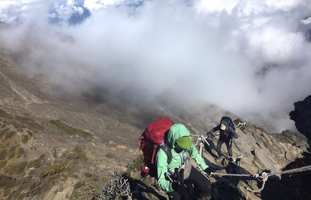 こちらは3,700m近い台湾の初冬の山でのワンシーンですが、気温はマイナス。急登がひたすら続き汗をかくほどだったため、アルファダイレクトの通気性がまさにドンピシャでした。立ち止まって長い休憩を取ると途端に寒くなるので、重ね着できるダウンは必携ですが。