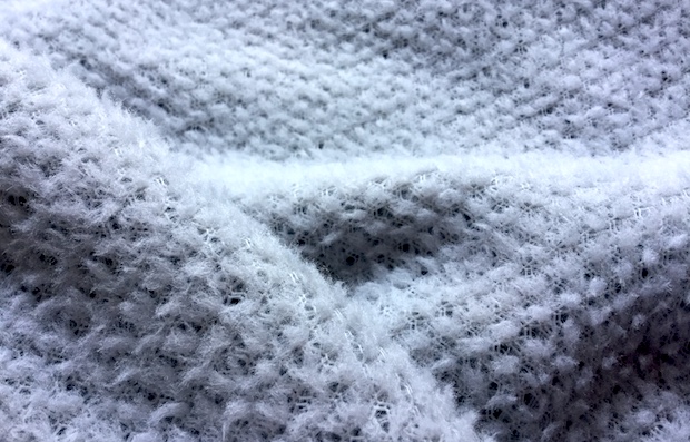 拡大した写真がこちら。裏地を取り去ることで、植毛したポリエステル綿がジャケットの内側で実際に見える状態になっているのですが、その結果格子状の隙間からムレがどんどん放出される圧倒的な通気性が確保されました。