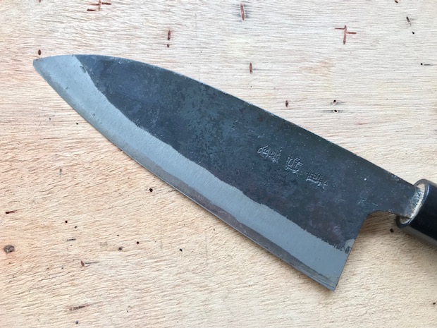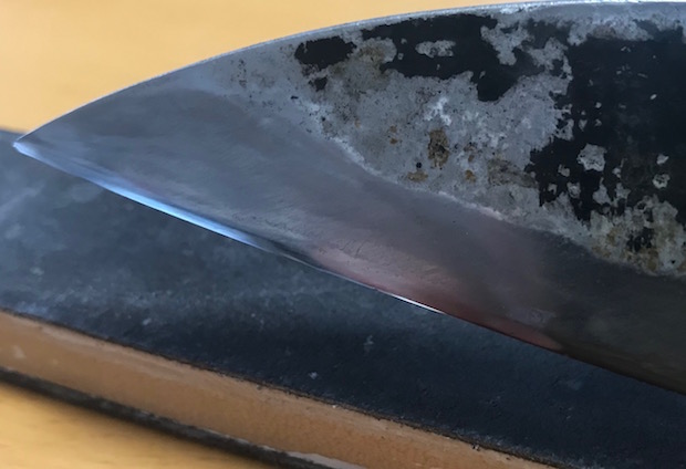さて、ストロップの威力の検証に協力してくれたのは友人宅の出刃包丁。きちんと研がれているように見えるものの……。